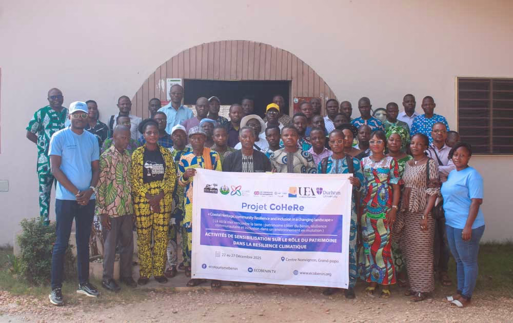 Au total, quatre vingt-dix (90) participants ont pris part à ces ateliers organisés par Eco-Benin, dans le cadre du projet « Là où la mer rencontre la terre : patrimoine côtier du Bénin, résilience communautaire et inclusion dans un environnement en mutation » (CoHeRe), en partenariat avec l’Université d’Abomey-Calavi à travers son Laboratoire d’Art, d’Archéologie, d’Analyse des Dynamiques Culturelles, d’Expertise Patrimoniale et Touristique (LACEPT), University of East Anglia, Durham University, l’Université de Cologne, avec l’appui du programme CLARE, financé par UK Aid (FCDO – Royaume-Uni) et le Centre de Recherches pour le Développement International (CRDI – Canada).