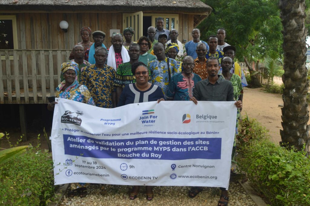 Les 17 et 18 septembre 2024, l’ONG Eco-Benin a organisé, au centre Nonvignon à Grand-Popo, un atelier stratégique visant à valider le plan de gestion des sites aménagés par le programme MYP5 dans l’Aire Communautaire de Conservation de la Biodiversité (ACCB) Bouche du Roy. Cet atelier, soutenu par le projet « Protéger et conserver l’eau pour une meilleure résilience socio-écologique au Bénin », en partenariat avec Join For Water, a rassemblé une trentaine de membres des comités locaux de gestion des sites, sous la direction de l’Association de Conservation de Promotion (ACP) Doukpo, ainsi que des autorités locales.